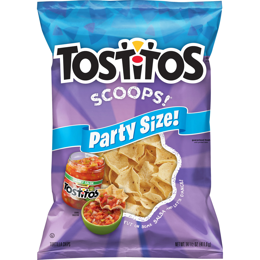 Tostitos Scoops Party Size 14.5 Oz "Eleven Chips: 140 Calories, 7g Total Fat, 0mg Cholesterol, 115mg Sodium, 19g Total Carbohydrate, 2g Protein" ![]() |