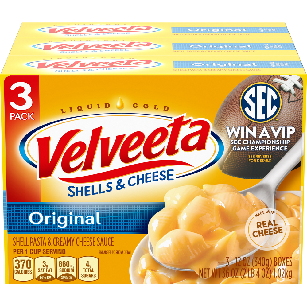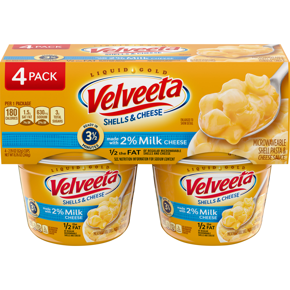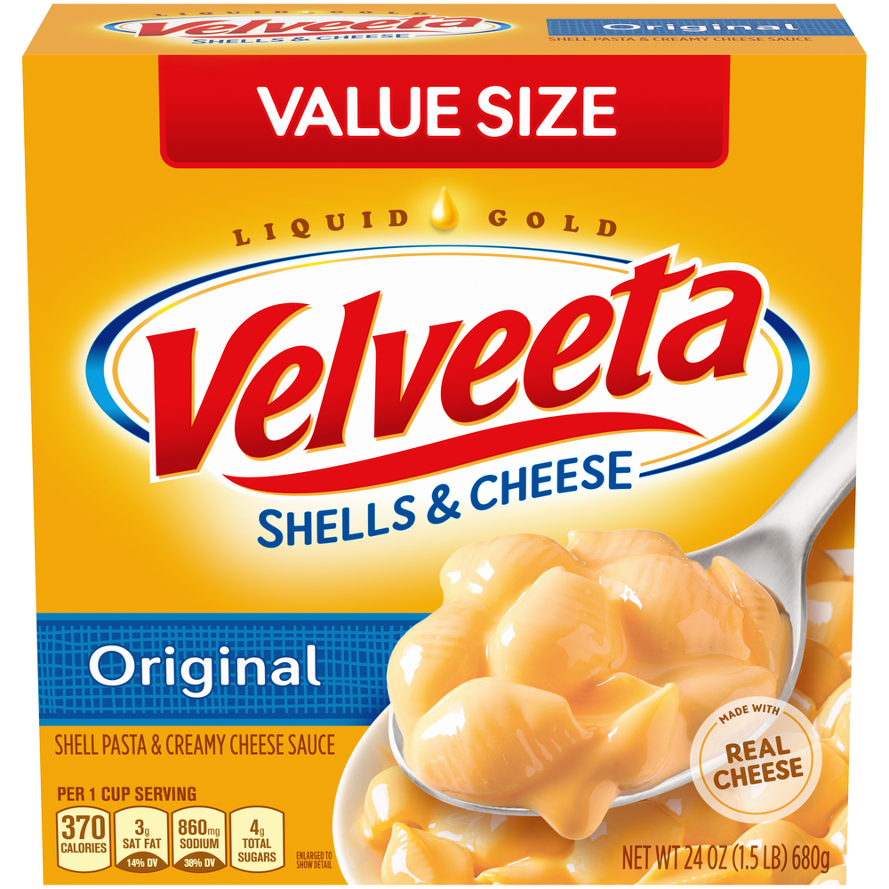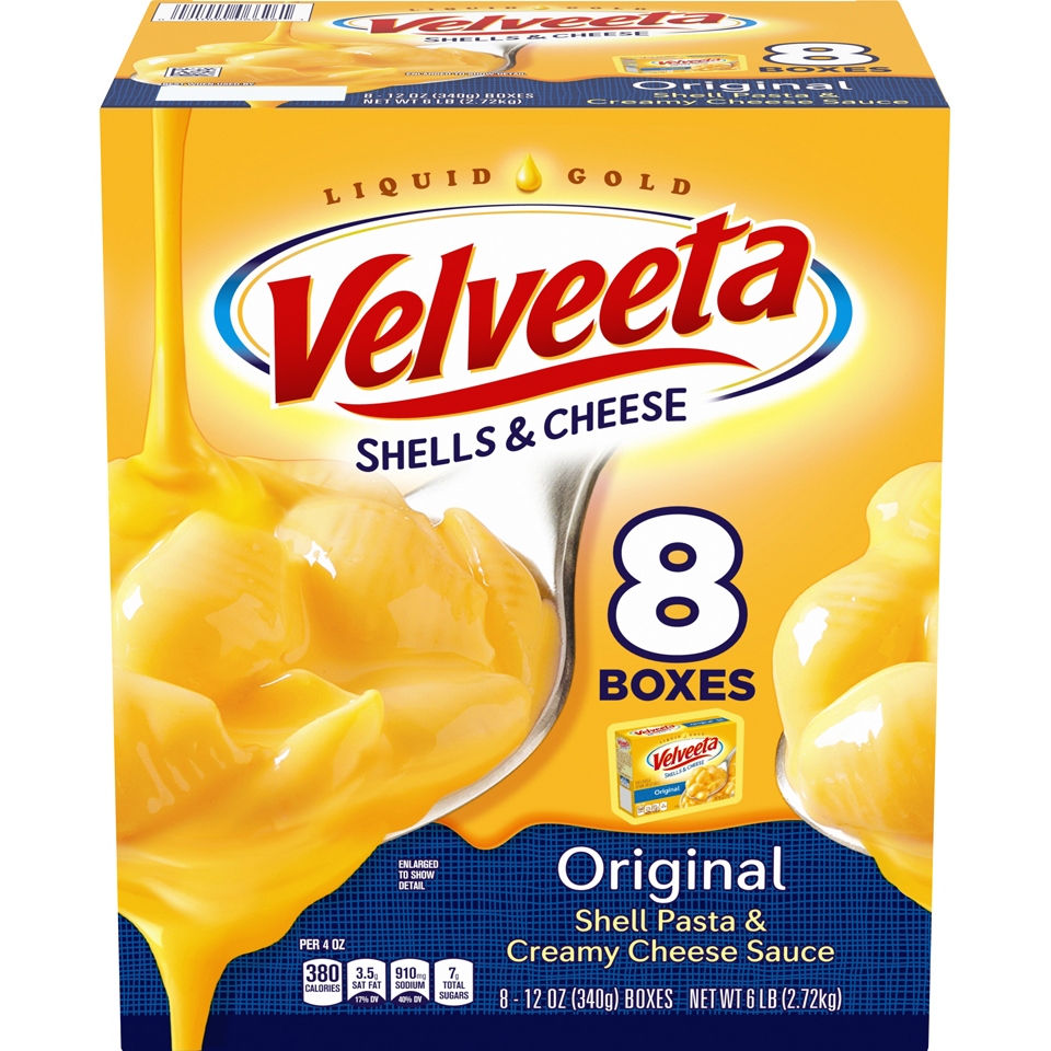 Velveeta macaroni and cheese has a delicious cheesy vibe. I have to tell you, I like the carbs even when I feel I've been slammed by a nutrition expert for eating them. Ha! Listed are cups, packs, boxes, some microwavable, some not. I'll have to say without shame that I like a great mac & cheese; kids love it, I'm middle aged myself and I eat it (secret). It's here to stay and Velveeta is a great solid brand! Oh, that cheesy sauce? Well...;)