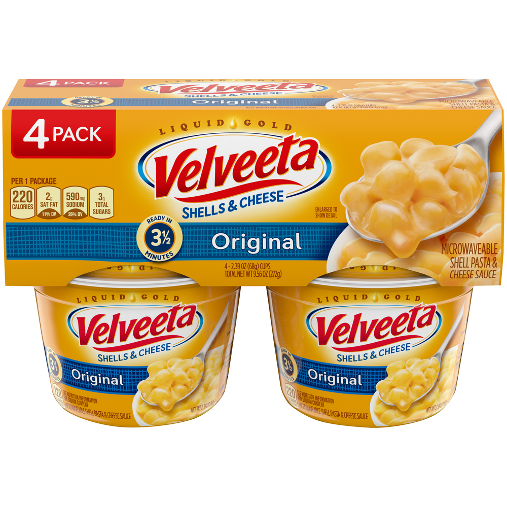Original Shells & Cheese, Microwavable 4 Pack 9.56 Oz "Per One Package: 220 Calories, 8g Total Fat, 2g Saturated Fat, 10mg Cholesterol, 590mg Sodium, 3g Total Sugars, 7g Protein" ![]() |