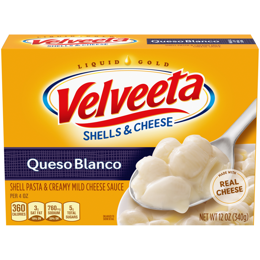 Queso Blanco Shells And Cheese, Microwavable 2.39 Oz "Per One Package: 210 Calories, 7g Total Fat, 2.5g Saturated Fat, 10mg Cholesterol, 520mg Sodium, 3g Total Sugars, 7g Protein" ![]() |