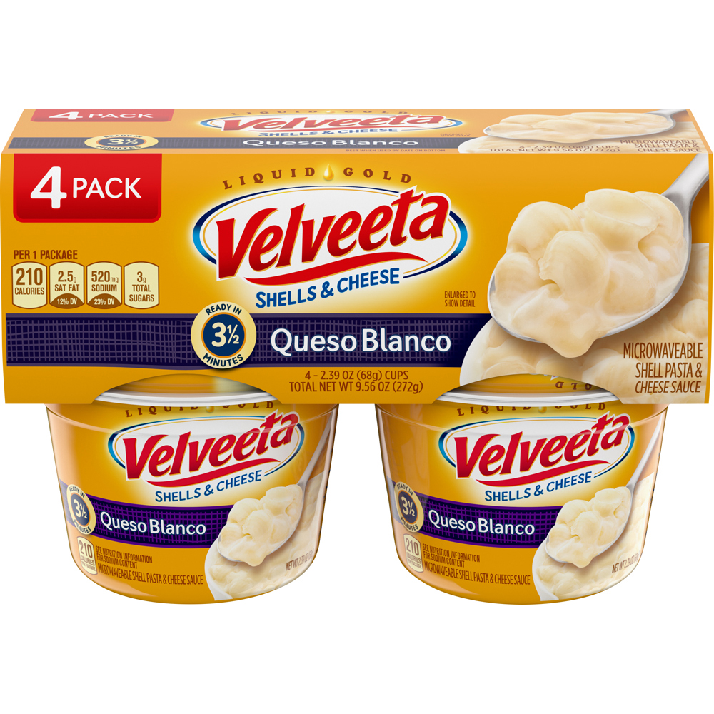 Queso Blanco Shells & Cheese, Microwavable 4 Pack 9.56 Oz "Per One Package: 210 Calories, 7g Total Fat, 2.5g Saturated Fat, 10mg Cholesterol, 520mg Sodium, 3g Total Sugars, 7g Protein" ![]() |