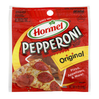 Hormel Original Pepperoni 6.0 Oz "Per 14 Slices: 140 Calories, 6g Saturated Fat, 490mg Sodium, 0g Sugars, 5g Protein" ![]() |