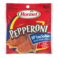 Hormel Pepperoni, Less Sodium 6.0 Oz "Per 15 Slices: 160 Calories, 6g Saturated Fat, 260mg Sodium, 0g Sugars, 5g Protein" ![]() |