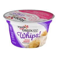 | Yoplait Greek 100 Calories, Whips, Lemon Meringue, Fat Free Mousse 4 Oz  | Yoplait Greek 100 Calories, Whips, Coconut Macaroon 4 Oz  |