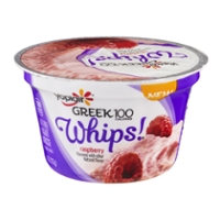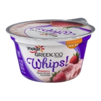 | Yoplait Greek 100 Calories, Whips, Strawberry Cheesecake 4 Oz  | Yoplait Greek 100 Calories, Whips, Raspberry 4 Oz  |