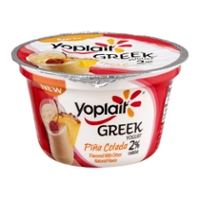 | Yoplait Greek Yogurt 2% Milk-fat, Pina Colada 5.3 Oz  | Yoplait Greek Yogurt 2% Milk-fat, Peaches & Cream 5.3 Oz  |
