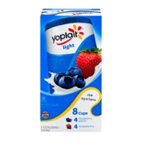 | Yoplait Light Blueberry Patch, Four Pack 1 LB 8 Oz  | Yoplait Light Blueberry Patch & Strawberry, Eight 6 Oz Cups - 3 LB  |