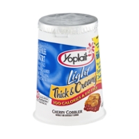 | Yoplait Light Thick & Creamy, 100 Calories, Fat Free Strawberry 6 Oz  | Yoplait Light Thick & Creamy, 100 Calories, Fat Free Cherry Cobbler 6 Oz  |