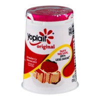 | Yoplait Original Strawberry & Mixed Berry 25% Less Sugar, 8 Cups 3 LB  | Yoplait Original Strawberry Cheesecake 25% Less Sugar 6 Oz  |
